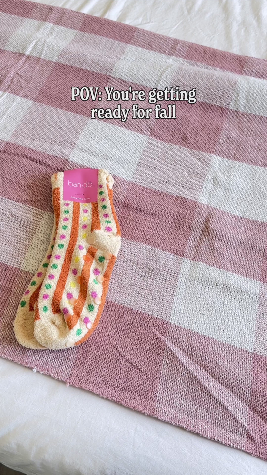 No need to get a grip, these socks already have you covered. This colorful grid pair is made of fuzzy chenille and microfiber with silicone grips on the bottom.