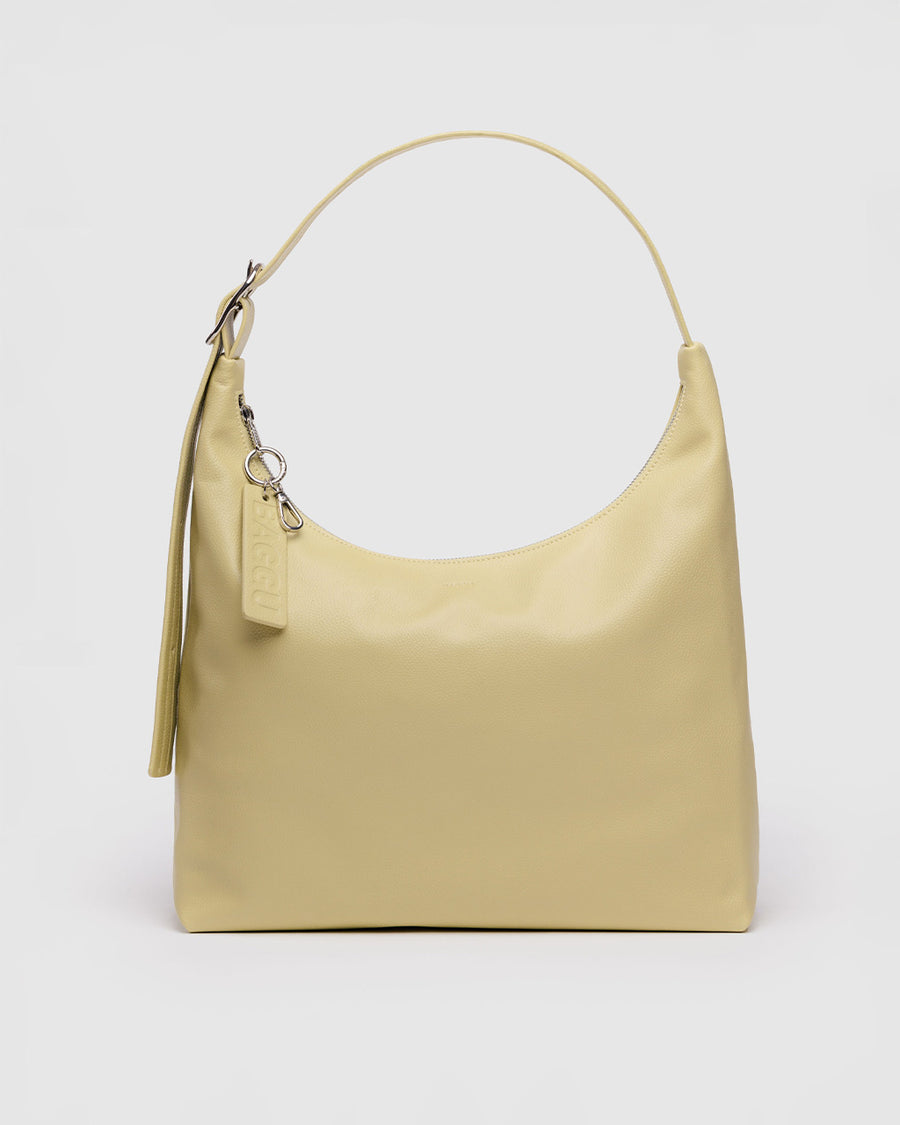 The most premium expression of Baggu's popular crescent shape. Crafted with simple, elegant lines and recycled leather that’s been fine-tuned for quality, style, and impact. The material upholds their durability and responsible sourcing standards alongside truly elevated details, like a signature grain, custom hardware, and recycled trims.