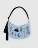 light blue medium crescent bag with black embroidered ballet icons