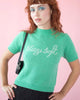 Meet the Em Sweater! With short sleeves, ribbed trim, and Lisa Says Gah's new "Stay Soft" graphic, this sweater is ready to become your seasonal favorite, perfect for those days when you want to feel good without trying too hard.