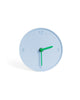 Decorative round clock with a raw, tactile finish and pastel light blue color. Its soft tone and natural texture make it perfect for relaxed, youthful spaces or light-filled interiors.