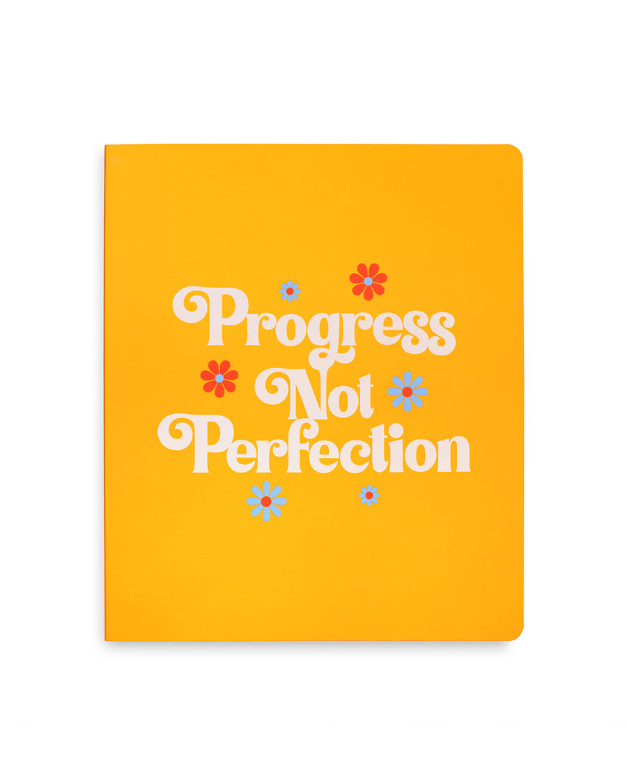 • Design: “Progress Not Perfection” text on bright, durable cover