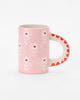 Each piece is carefully hand-painted with 100% stoneware and fired at 2282 °F. Featuring playful floral design and a bold, patterned handle.