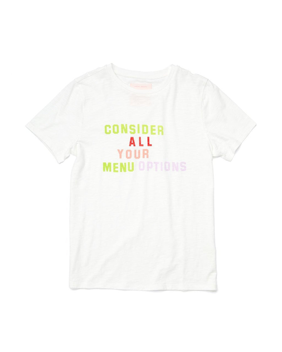 For your consideration... All your menu options. In restaurants and in life in general, this tee we made with our friend Katie Kimmel is here to remind you to think through all of your options. Because we believe that it’s important to try new things, no matter how good your usual order is.