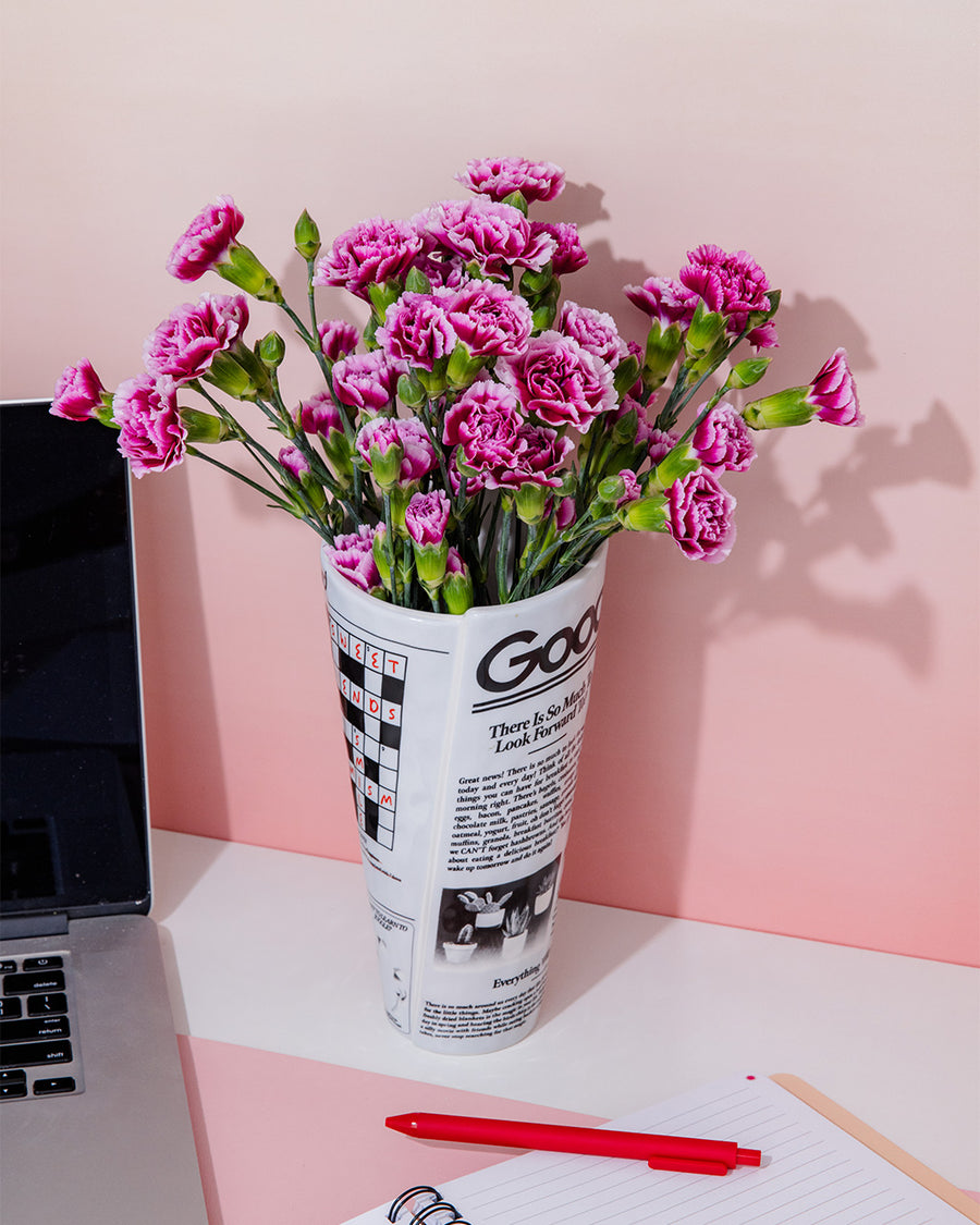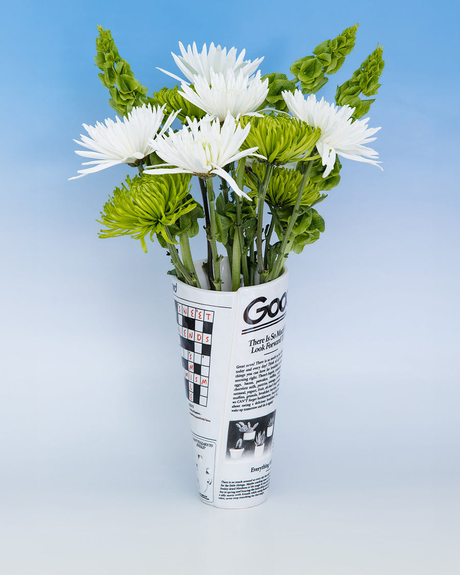Meet your new conversation starter. This ceramic newspaper vase looks just like a rolled-up paper, complete with crossword puzzles and vintage-style classifieds. It’s a unique flower vase that gives your blooms the front-page treatment.