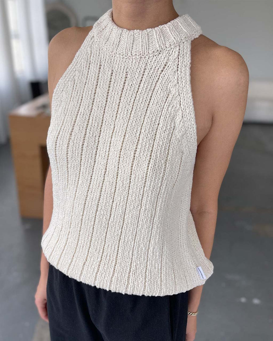 Say hello to the Claire Tank, a refreshing take on the halter top. It follows a modern silhouette that draws inspiration from the classic halter straps we all know and love. Made of cotton, it features thick ribbed details throughout and maintains the perfect length to pair with your favorite bottoms.