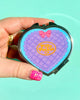 Never be without your meds again! This portable pill container is perfect for bringing your lactaid and ibuprofen with you wherever you go! It has a secure closure to prevent spills, a divided internal space to keep things organized, and even has a mirror in the lid!