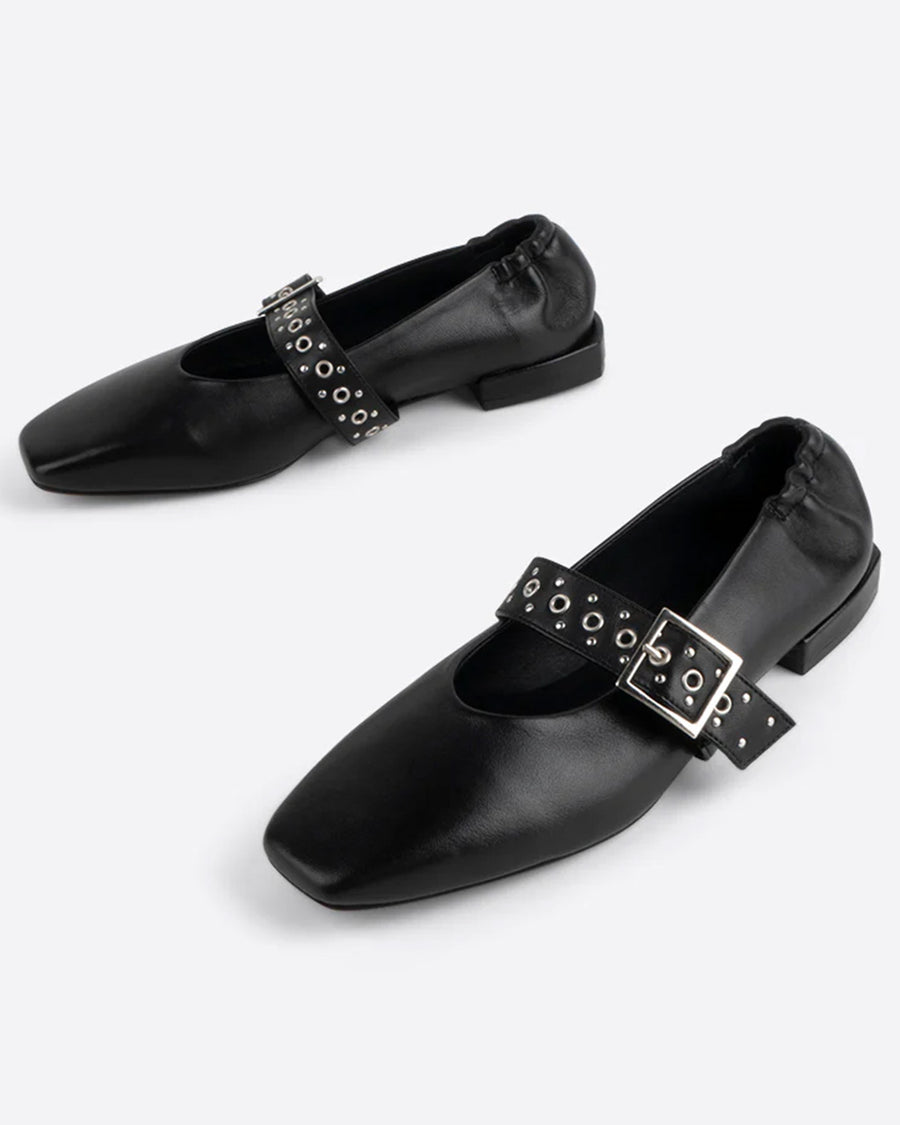 Intentionally Blank is wild about this new update to their best-selling PEARL! The FORUM Mary Jane was created in Spain out of leather from a LWG (Leather Working Group) certified supplier. This square toe ballet flat has an adjustable studded strap and elasticized heel making it elevated for styling, but comfortable and easy to break in.