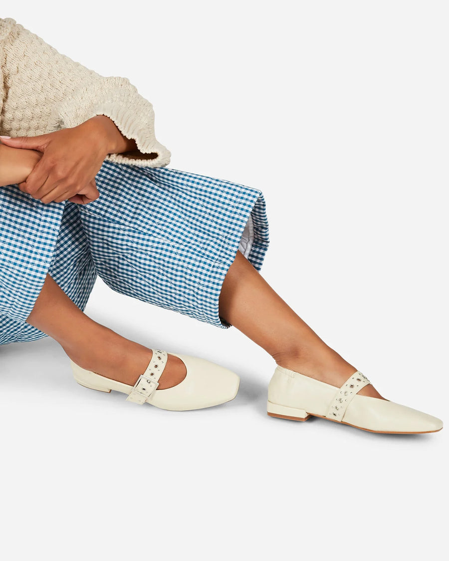 Intentionally Blank is wild about this new update to their best-selling PEARL! The FORUM Mary Jane was created in Spain out of leather from a LWG (Leather Working Group) certified supplier. This square toe ballet flat has an adjustable studded strap and elasticized heel making it elevated for styling, but comfortable and easy to break in.