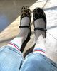 The Boyfriend Sock is one of the signature styles and a year round bestseller. She is the perfect mix of function and fashion creating an effortless sporty vintage charm to any outfit. She is slightly longer than a classic crew and has a contrast double stripe. Durable and comfortable she upgrades any outfit. One of Le Bon Shoppe's go-to pairings well-worn denim and Converse chucks. We are obsessed and over at the Le Bon Shoppe HQ you can find her on a pair of happy feet nearly 365 days a year. We don't like to play favorites so shhh don't tell anyone but this girl has a special place in their heart!