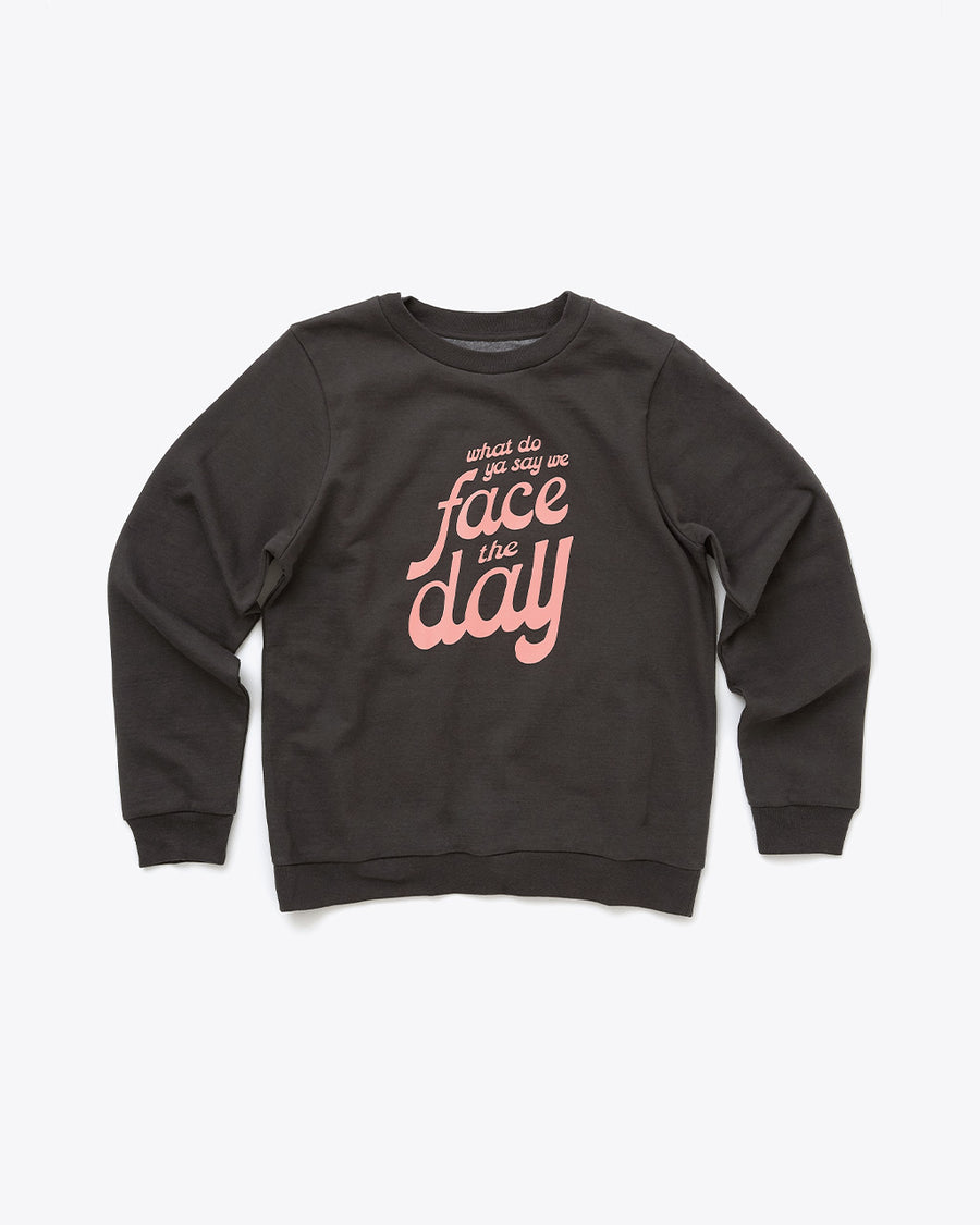 You never know—the day might even include cheese fries. This super soft sweatshirt has long sleeves and a crewneck.