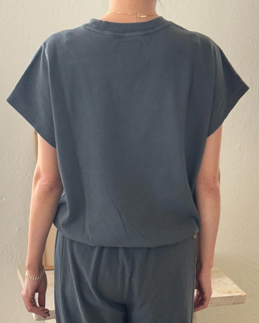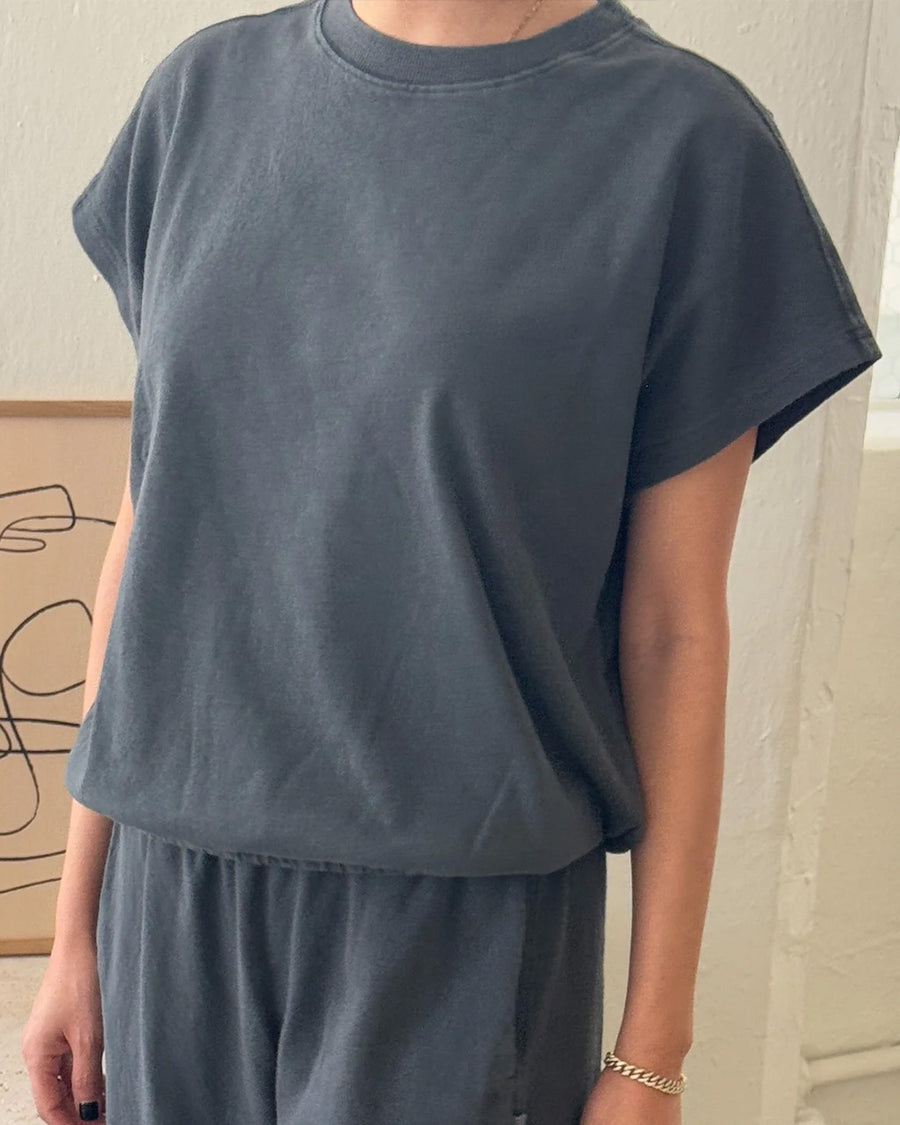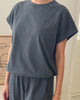 A refined twist on a classic silhouette, the Fei Tee takes design cues from the Jeanne Tee, such as its boxy frame and cap sleeves. It also adopts newer elements from the Daisy Long Sleeve Top like an elasticated hem. This feature offers a fun alternative to tucking in the tee, creating effortless volume — perfect for pairing with high-waisted bottoms.