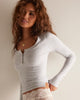 Sleek, soft, and perfect for layering, this long-sleeve top from Intimately features a button-front closure and short side slits for added comfort and versatility.