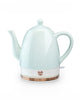 Fashion meets function with this stylish tea kettle. The Noelle Ceramic Electric Tea Kettle features glossy mint ceramic glazing and a trendy rose gold metallic base. Includes a plug-in base, 1.5 L capacity, and an easy on/off switch.