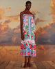 Embrace the essence of tropical allure with the Off-White Flowers Beach Maxi Dress, artfully crafted with vibrant embroidery. This enchanting piece, tailored from thoughtfully selected materials, features a medley of bold red florals and lush greenery against a serene off-white backdrop, invoking the spirit of a sun-drenched Eden. Whimsical gathered tiers add a sense of breezy movement, while the sleek, adjustable tie straps offer a personalized fit, perfect for basking in the warm embrace of summer days.