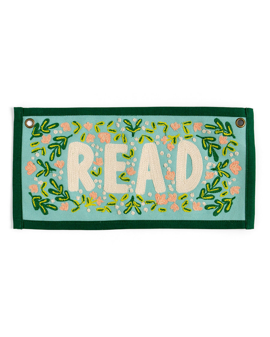Elevate your book nook with the Read Embroidered Canvas Banner! Crafted with detailed chain-stitched embroidery on durable canvas, this banner is full of timeless charm. Complete with brass grommets and a canvas hem edge, it's ready to add literary flair to any space. Perfect for bookworms, students, or anyone who loves to curl up with a good book, our Read Banner makes a thoughtful gift for birthdays, housewarmings, or any occasion. Transform your reading corner into a cozy sanctuary with this sweet and inspiring wall hanging!
