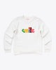 white sweatshirt with multicolor &
