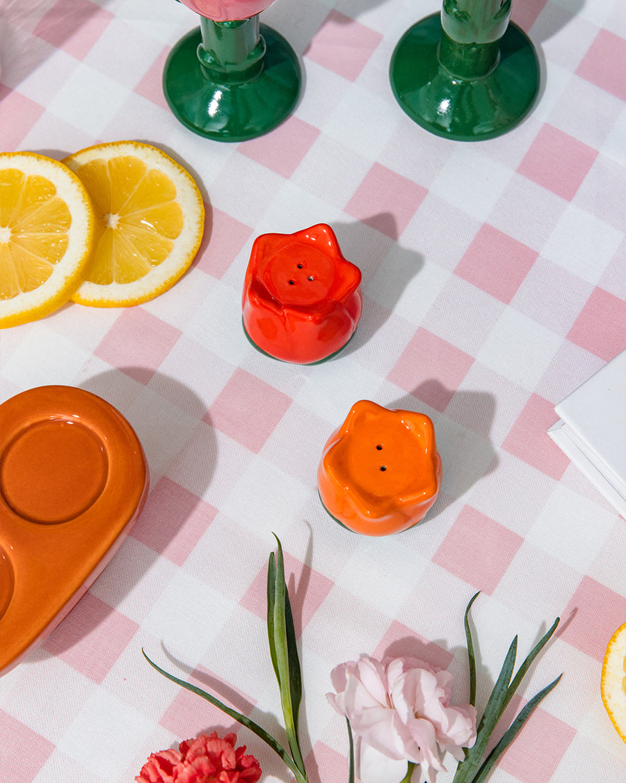 Your eyes don’t deceive you. What you’re looking at is the most beautiful salt and pepper shaker set to ever exist. And, yes, these tulips come with their very own flower pot to live in.