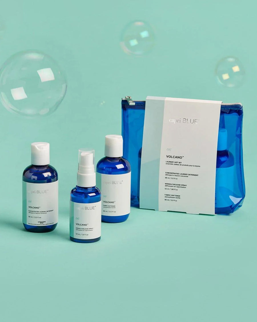 Fight static, stains and wrinkles in style with this Volcano Laundry Gift Set! It’s perfect for trial and travel, so treat your clothes and fabrics to non-toxic, cruelty-free formulas at home or on the go! This set features Concentrated Laundry Detergent, Fabric Softener and Wrinkle Release Spray in the iconic Volcano fragrance.